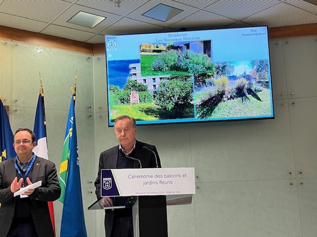 Lors de la cérémonie officielle du 15 octobre dernier, notre résidence a reçu un prix d’encouragement pour l’ensemble de ses espaces verts. Le jury 2025 a notamment pris en compte la qualité et la diversification des plantations sélectionnées pour s’adapter aux évolutions météorologiques. Notre Commission Espaces Verts a choisi en effet de planter des espèces moins exigeantes en eau et plus résistantes aux conditions climatiques actuelles et à venir.